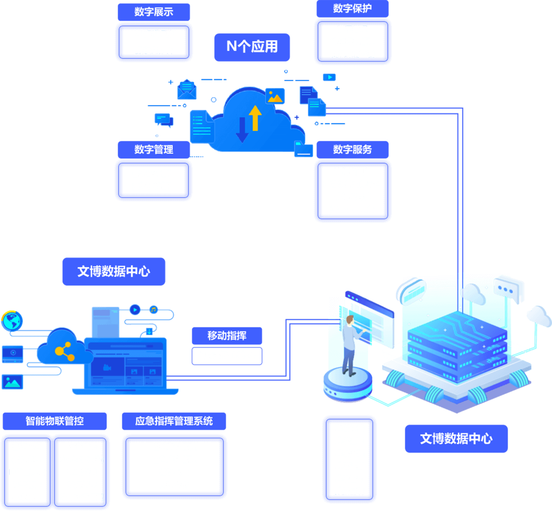 运用人工智能、大数据、云计算以及移动互联网等技术,对博物馆全业务进行信息化,构建博物馆大数据中心,打造统一的智慧博物馆生态体系,有效提升文物的数字化保护、管理和利用水平,实现博物馆精准化管理、创新和拓展博物馆服务模式,提升博物馆综合实力,实现博物馆的核心价值和社会使命。